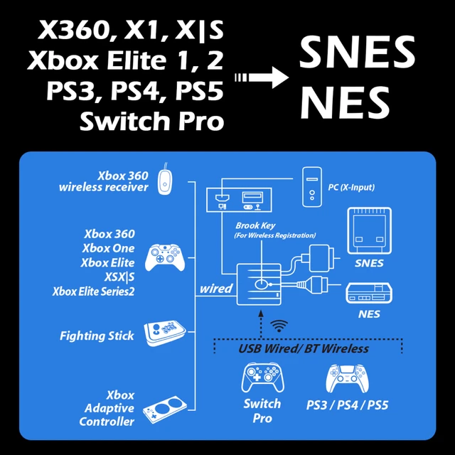 Brook Wingman für SNES Adapter forXbox Serie X/S für PS5/für Schalter Pro Controller für SNES/für NES/für SFC/für FC Konsole