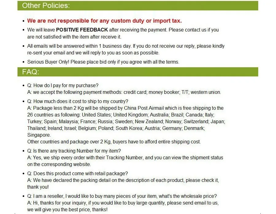 (Wir unterstützung großhandel und Dorp verschiffen, wenn sie haben jede queston, pls fühlen sich frei, uns zu kontaktieren. Hoffe, sie genießen sie unsere speicher, danken u sehr viel!)
