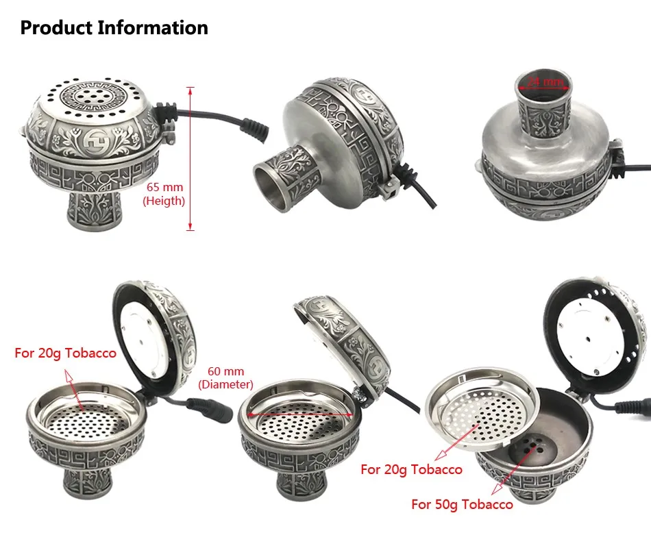 Große Größe Multifunktionale Metall E-Shisha Smokepan Elektronische Tabak Schüssel & Keramik Holzkohle Für Shisha/Shisha/Chicha /Narguile Zubehör
