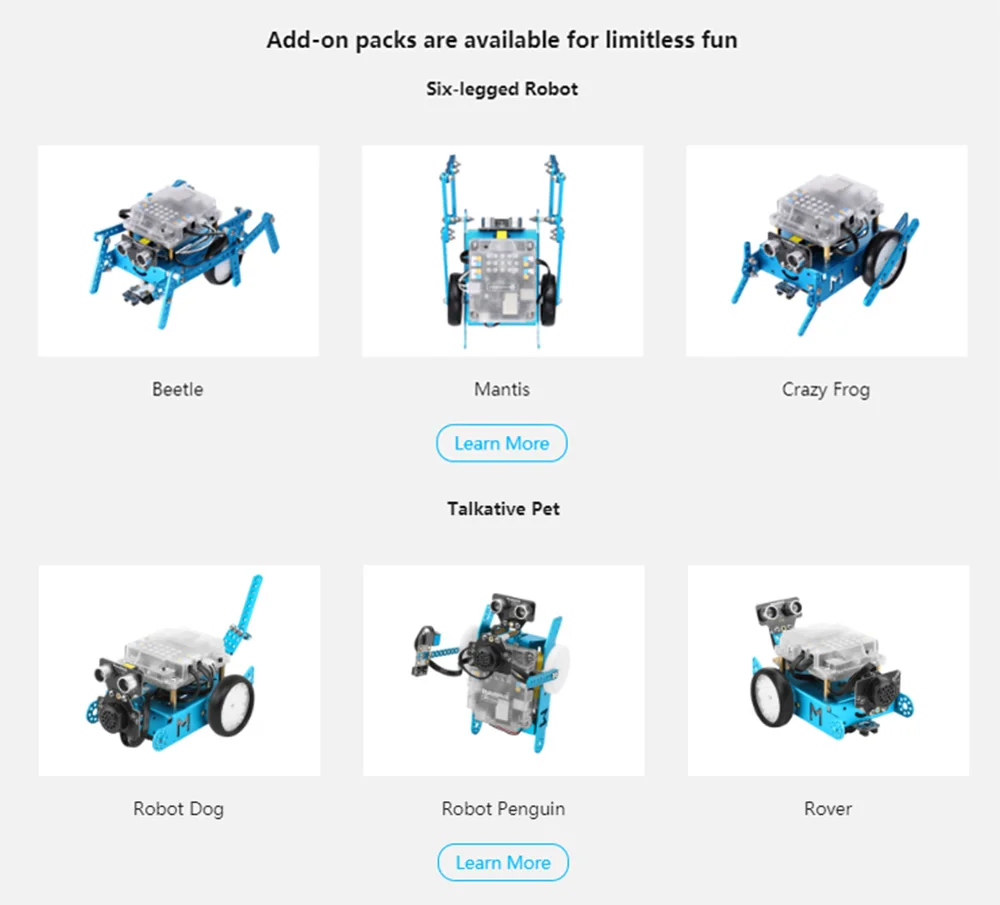 It’s up to you to decide if you wants to follow the guide or DIY it with your own imagination to make your mBot completely differ from everyone else, You can also upgrade it by purchasing the add-on package of mBot to DIY more forms of mBot.