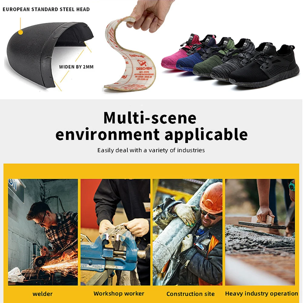 Features:Men Work Safety Boot Steel Toe Shoes Anti-Smashing Construction Safety Shoes Indestructible Safety Sneakers