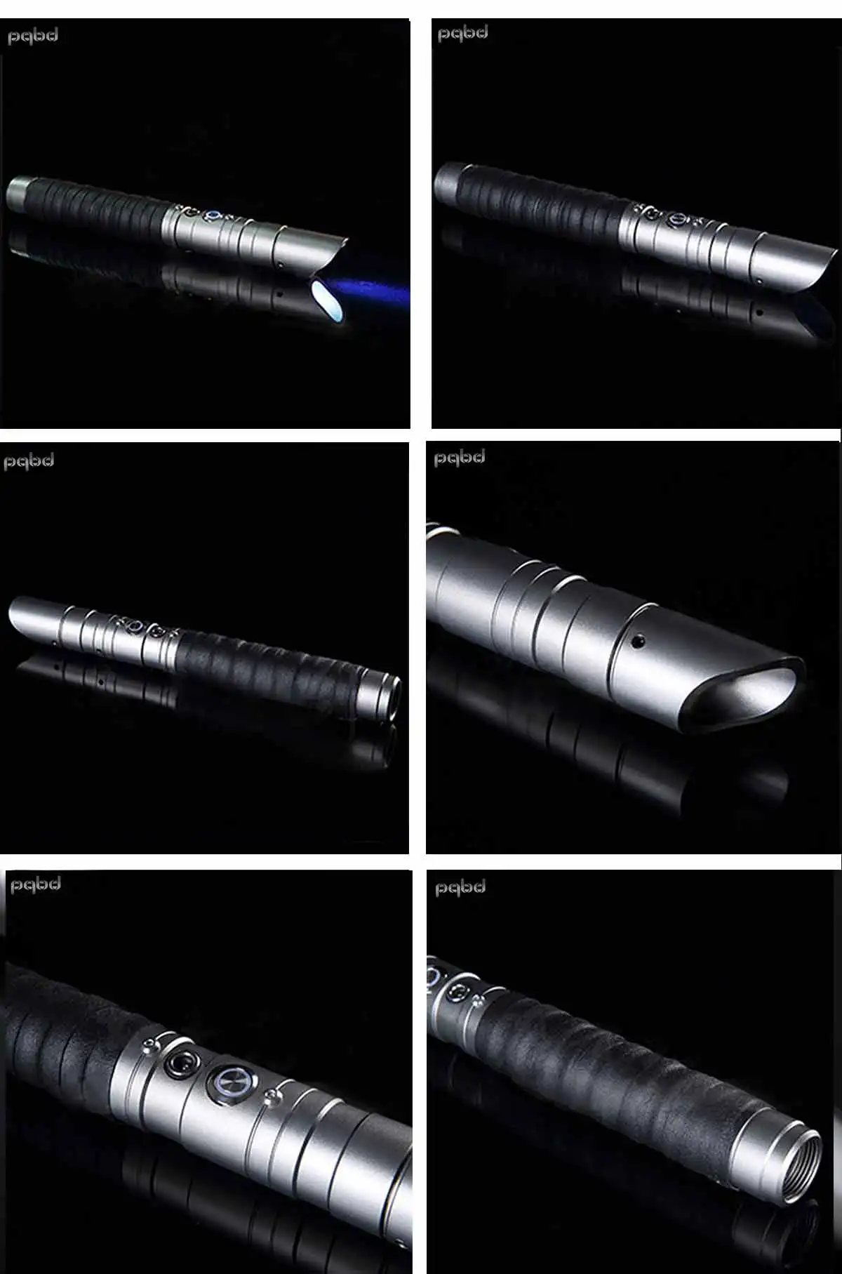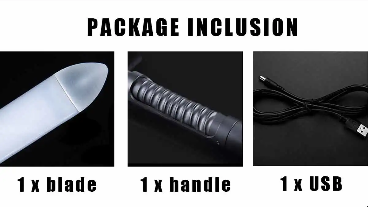 Material: Metal(handle), pc(blade) SIZE: Handle 27cm. blade 73cm,total length 100cm Diameter: Blade 2.5cm, handle 3cm Handle color: Silver, gray, black, gold, red, blue. 11 light colors: cold white, deep red, pink, red, orange, yellow, green, green, blue, purple, and ice blue. Charging: USB fast charging Battery capacity:1200mAh Sounds :Three kinds of soumds