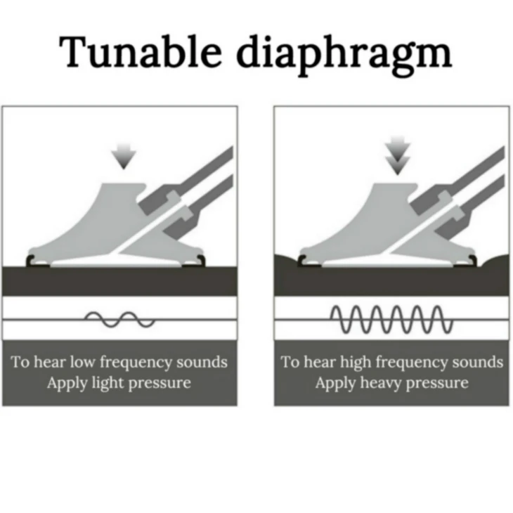 Quando si utilizza entrambi i lati, Per sentire a bassa frequenza suoni: Applicare Una leggera pressione, a sentire ad alta frequenza suoni: applicare una forte pressione.