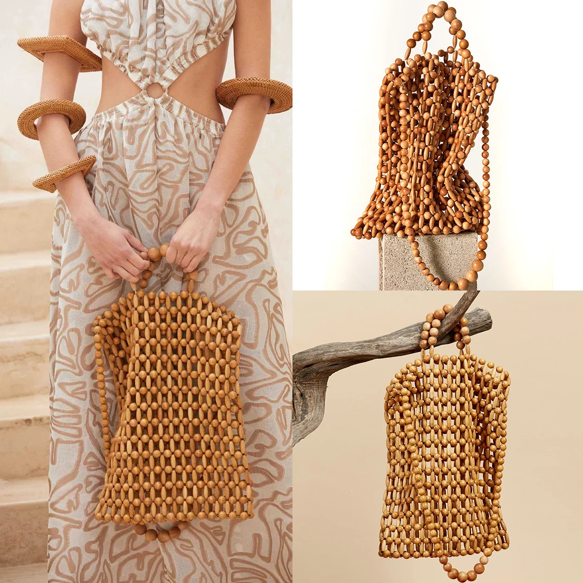 ファッションとレトロなスタイル、目立つで観衆で木製ビーズバッグ