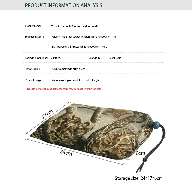 Regen Jas Poncho Mat 3 In 1 Multifunctionele Draagbare Wandelen Camping Regenjas Zak Mat Luifel Outdoor Wandelen Waterdichte Regenkleding