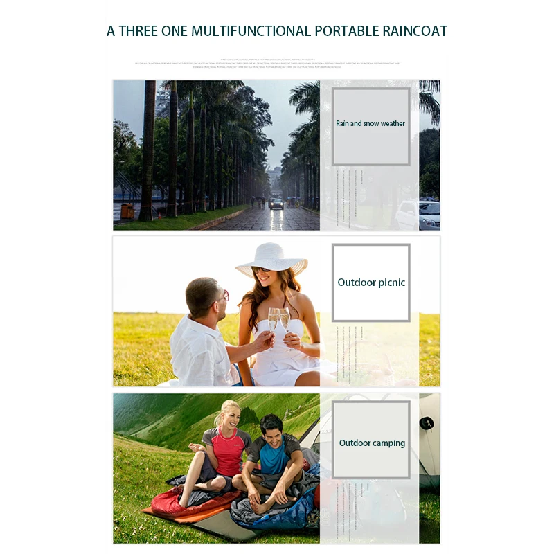 Multi-functie ontwerp, kan worden gebruikt als regenjas, mat, luifel, de last op reizen.