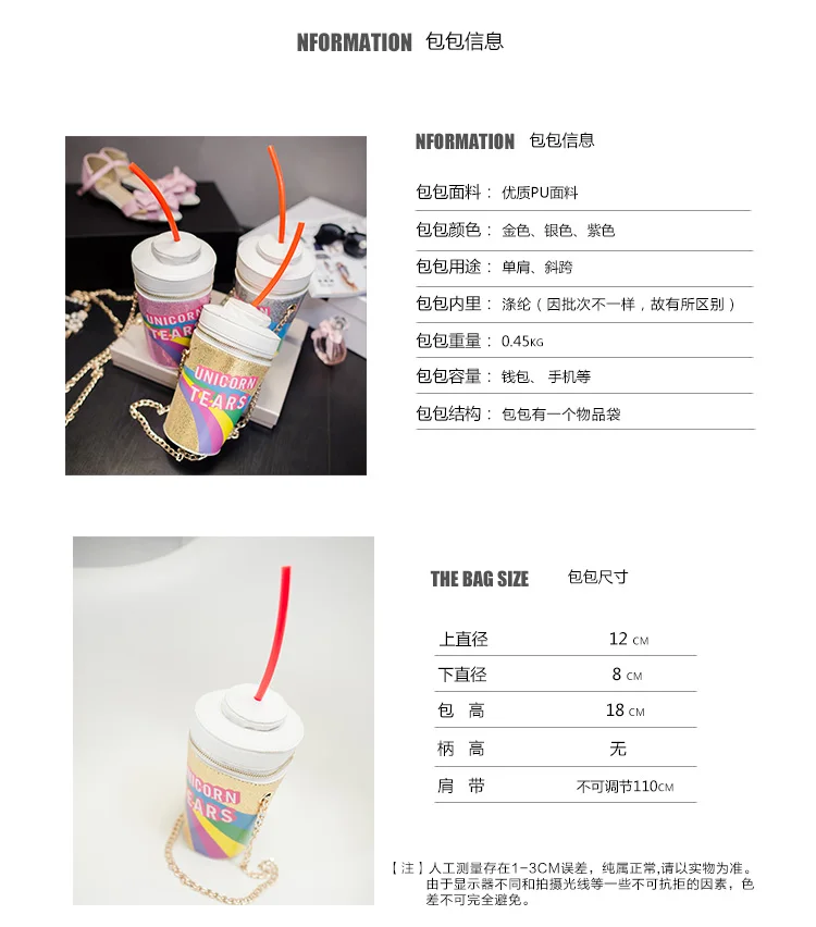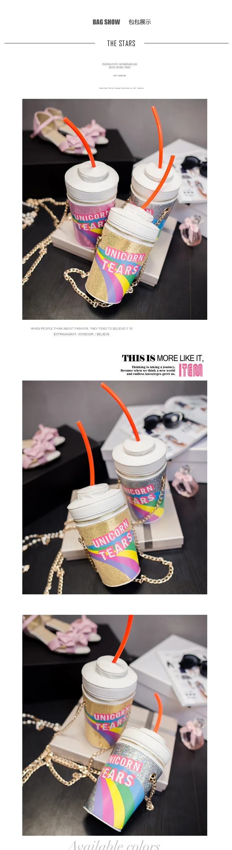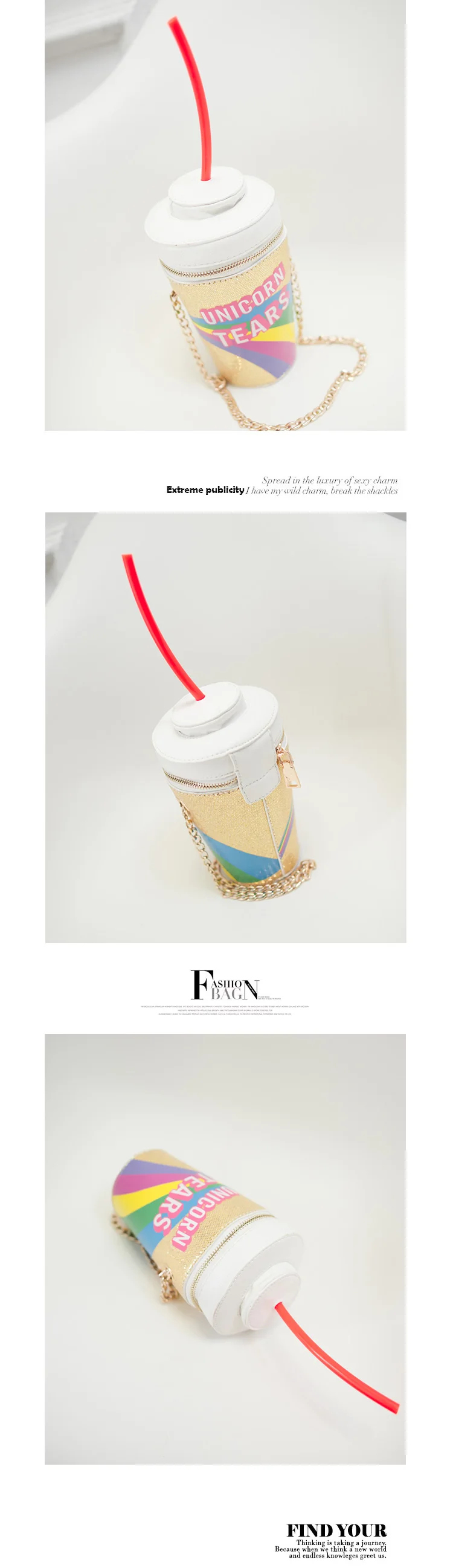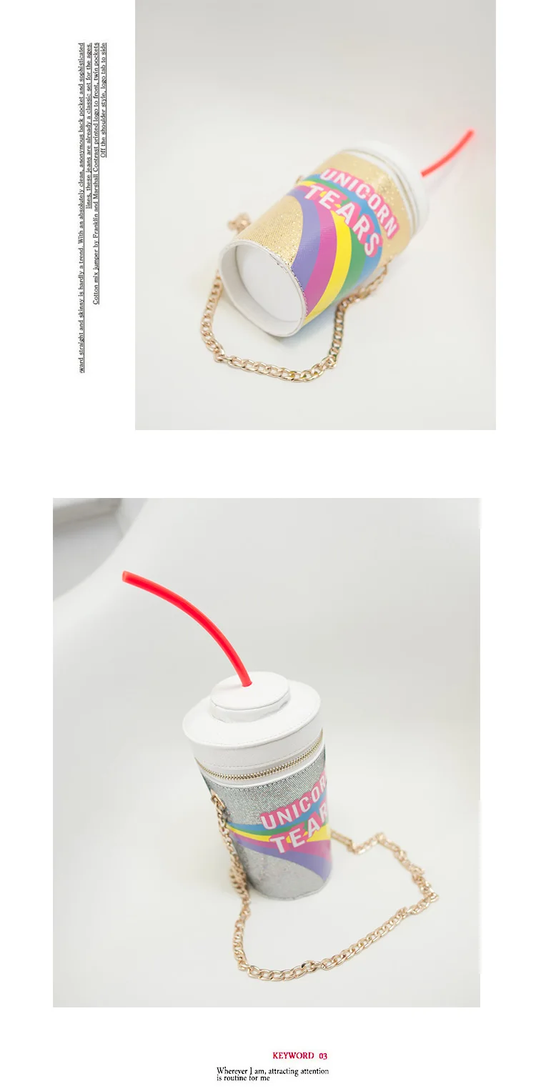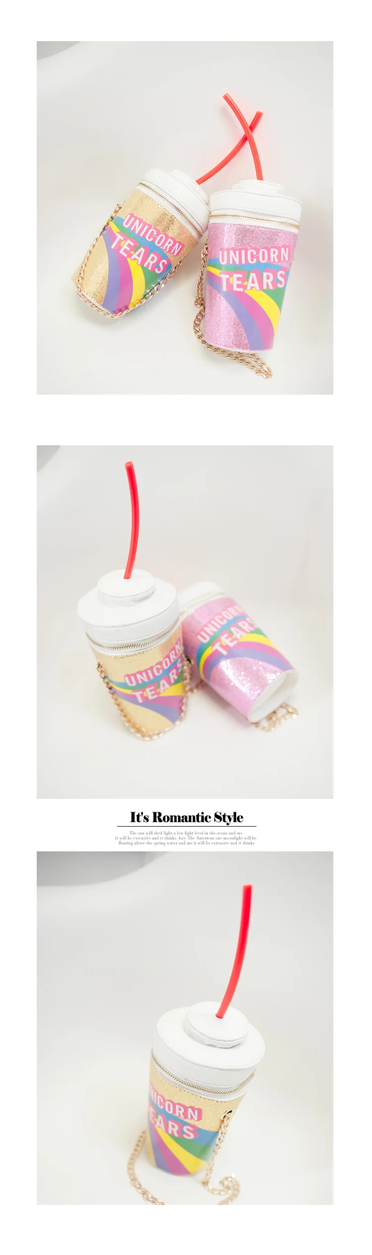 Ashion design personalizado beber garrafas de refrigerante modelagem magro dip unicorn lágrimas novidade saco bolsa de ombro