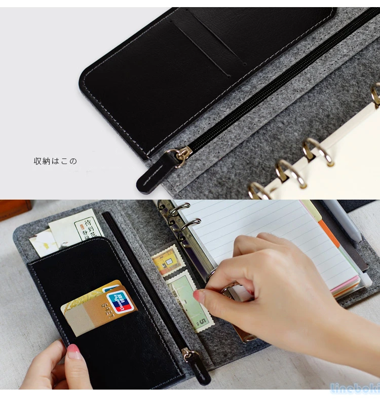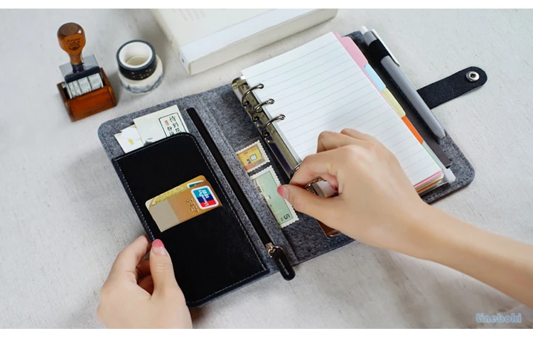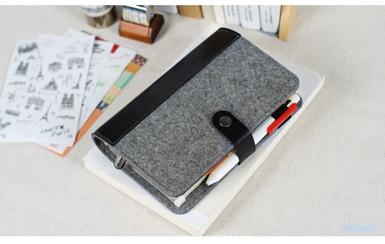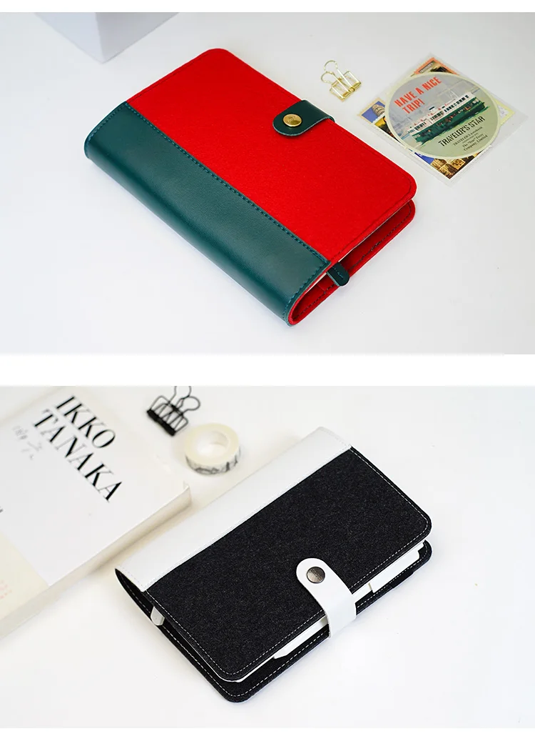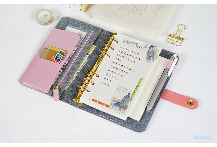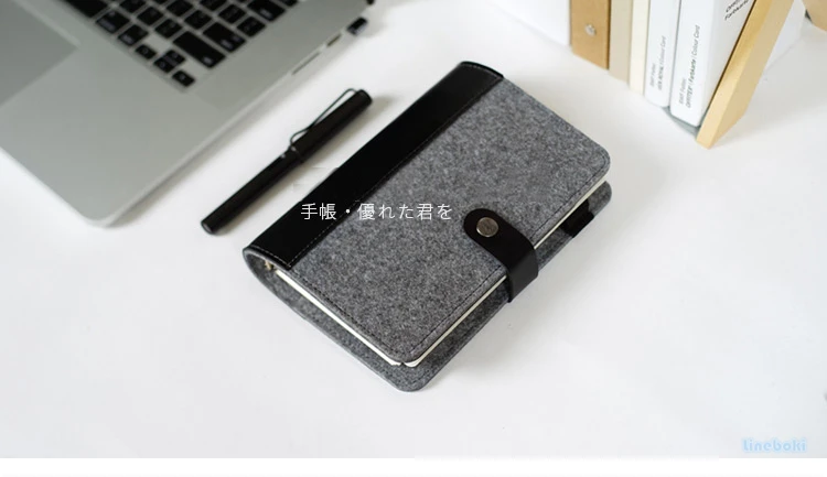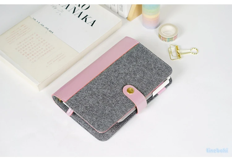 Japonês pessoal leiteria feltro com couro do plutônio viagem diário anel dourado escritório fichário caderno bonito kawaii agenda planejador a5 a6