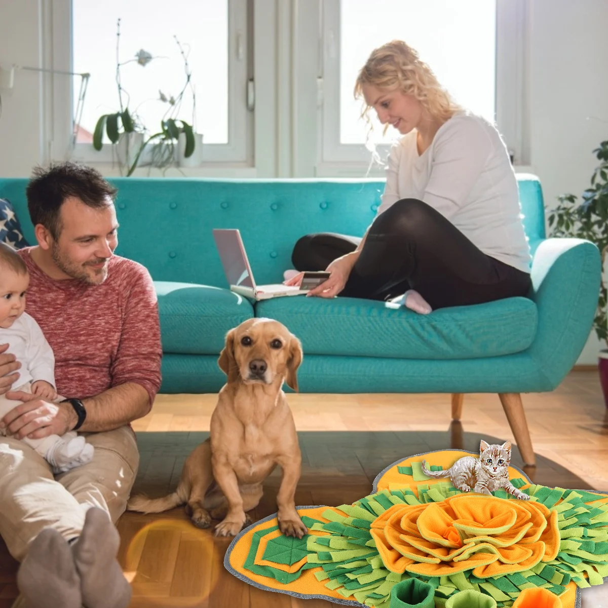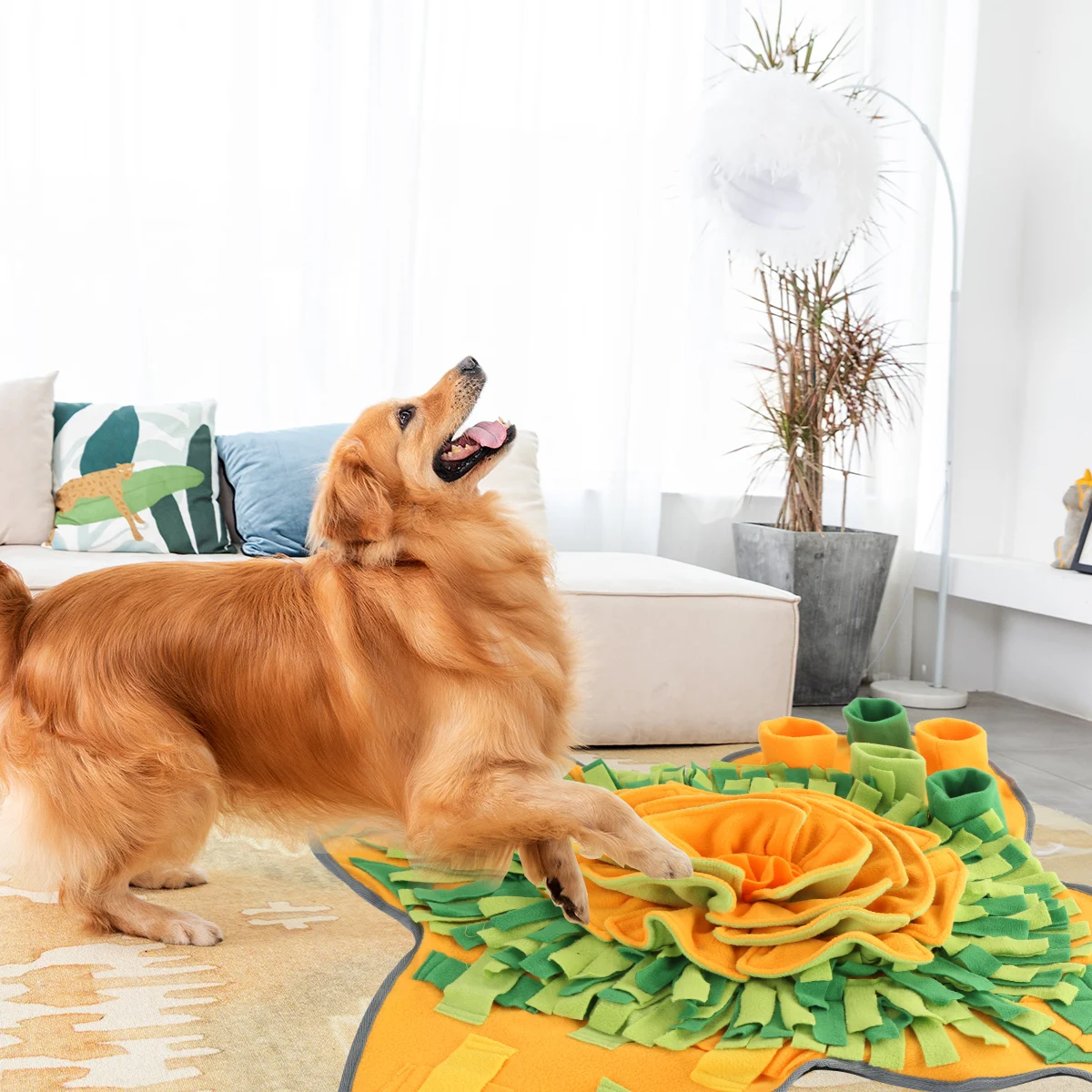 Pétalas e vidro verde multi-camada para esconder comida de cão, esta esta esteira snuffle