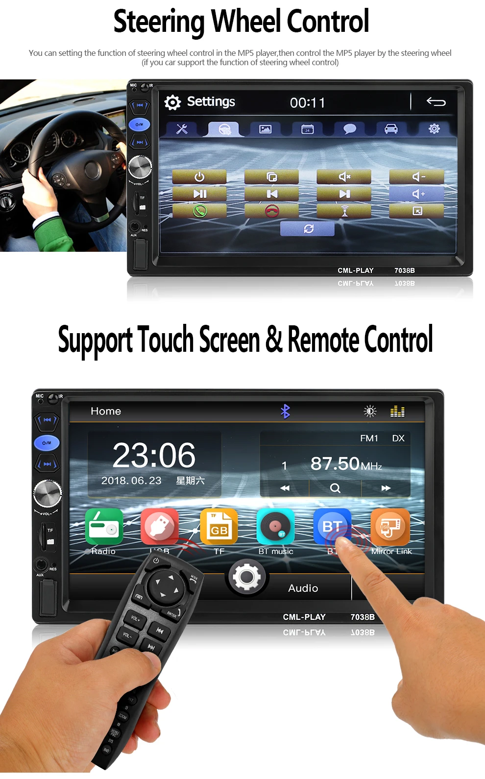 รองรับควบคุมพวงมาลัย ---สามารถชุดพวงมาลัยควบคุมรถเดิมผ่านเมนูตั้งค่า;