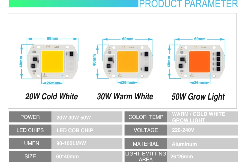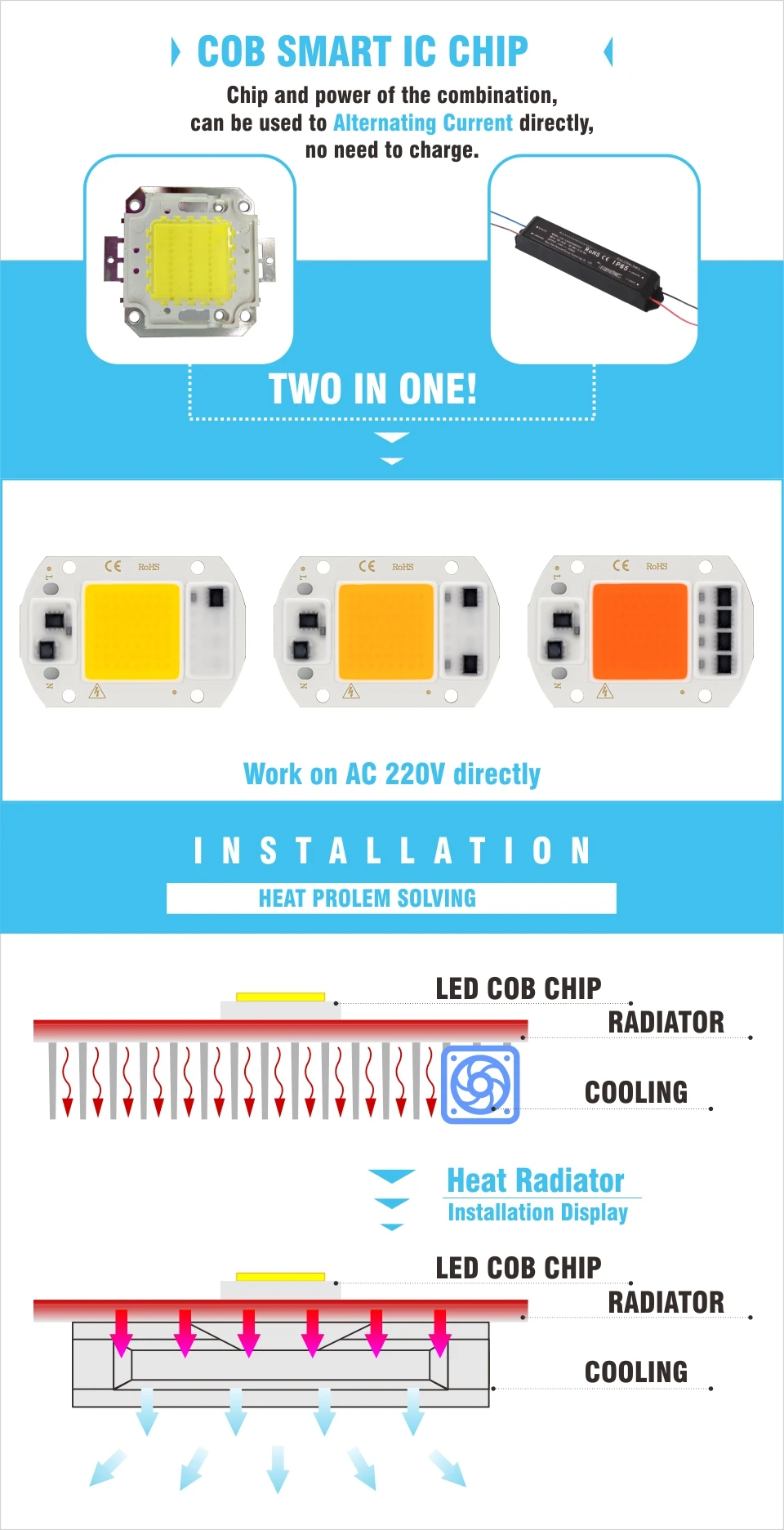 LED ชิป COB 20 W 30 W 50 W 220 V ชิป IC สมาร์ทไม่ต้อง Driver ลูเมนชิป full Spectrum สำหรับ DIY Floodlight กลางแจ้ง Spotlight