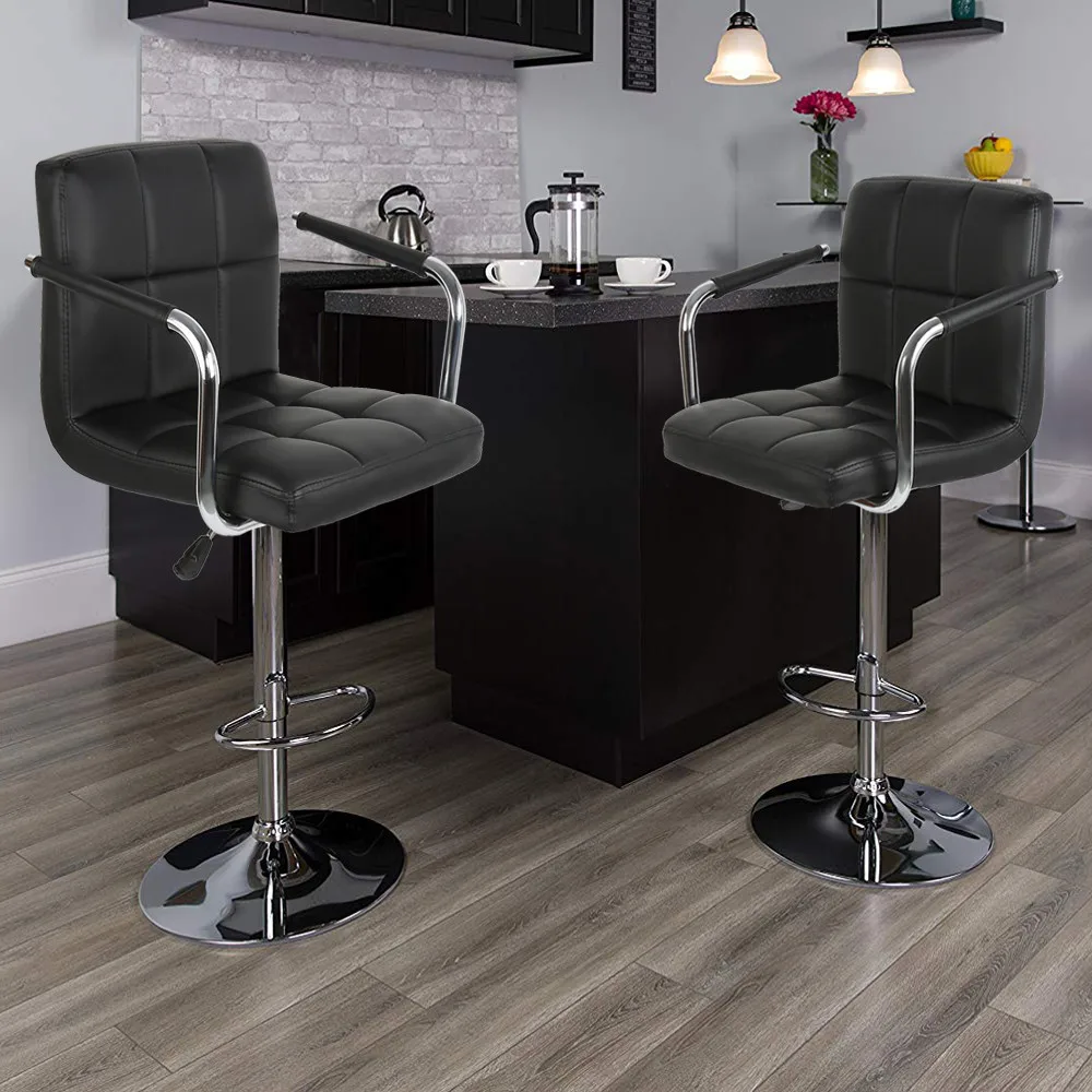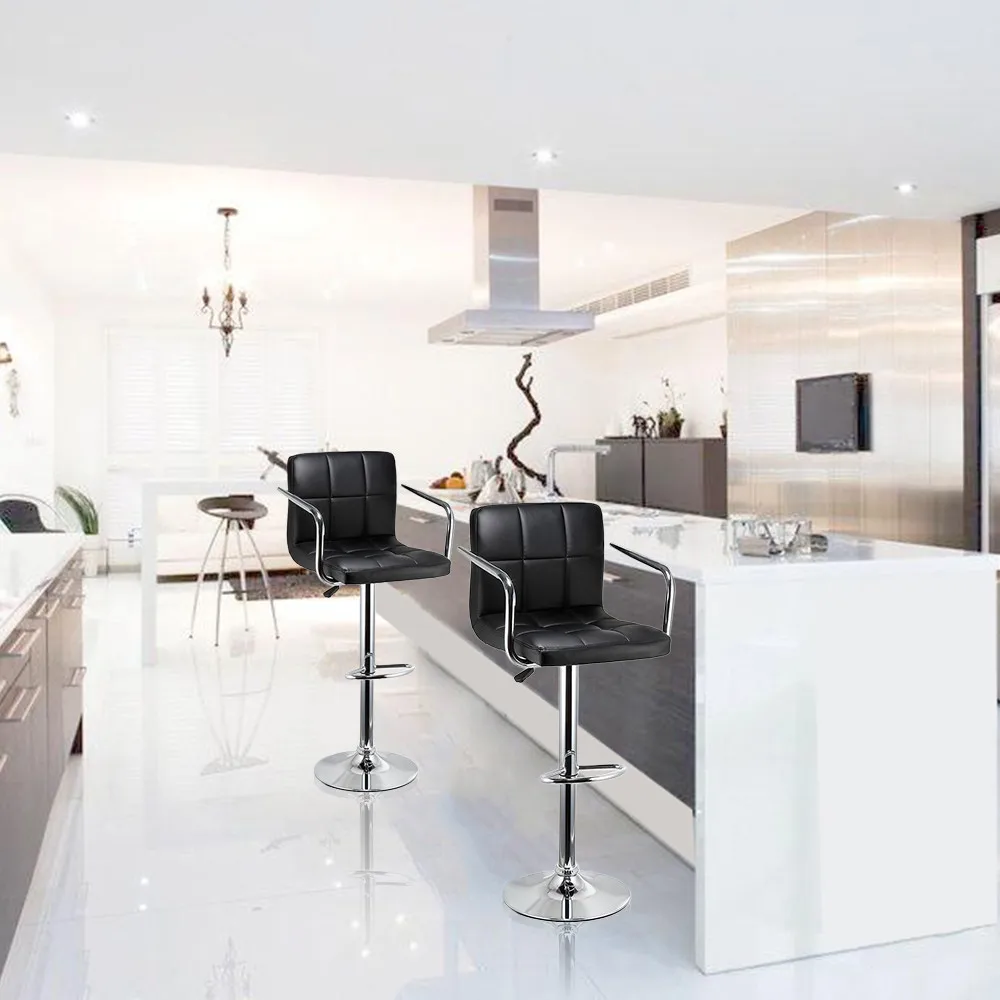 2 Pcs แฟชั่นปรับยกผับบาร์เก้าอี้ Handrail หนังหมุนบาร์พร้อมที่วางเท้า Modern Home อุปกรณ์เสริม HWC