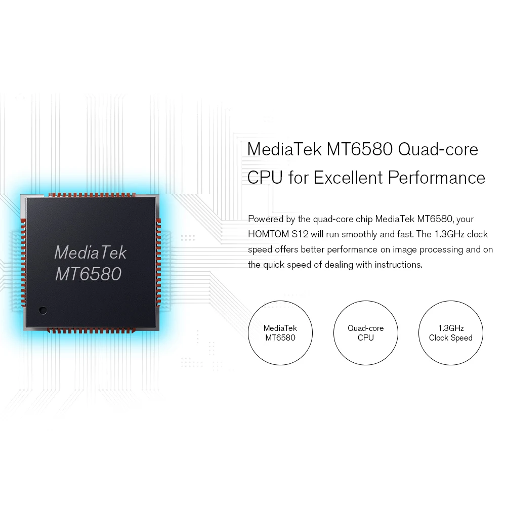 High-end MTK6580 1.3 GHz dört çekirdekli, hızlı sistem yanıtı, artı 1 GB RAM ve 8 GB ROM (destek max 64 GB flash kart genişletilmiş), yüksek veri verimliliği ve çoklu görev işleme.